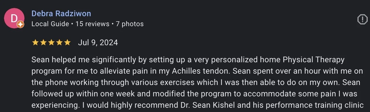 One-on-one concierge physical therapy services provided in the comfort of your own home with Dr. Sean Kishel, PT, DPT, CSCS.